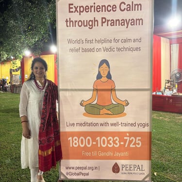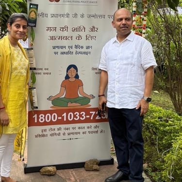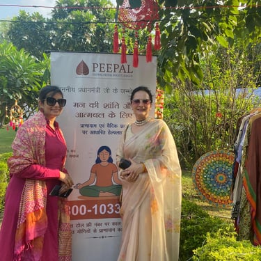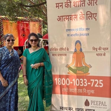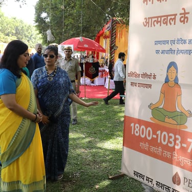 MP Bansuri Swaraj, Member of Parliament; Dr. Ashish Bhutani, IAS, Secretary, Ministry of Cooperation; Mrs Shefali, President Resident Welfare Association - Chanakyapuri; Mrs Savita, President Resident Welfare Association - Chanakyapuri endorse Pranayam Call Center.